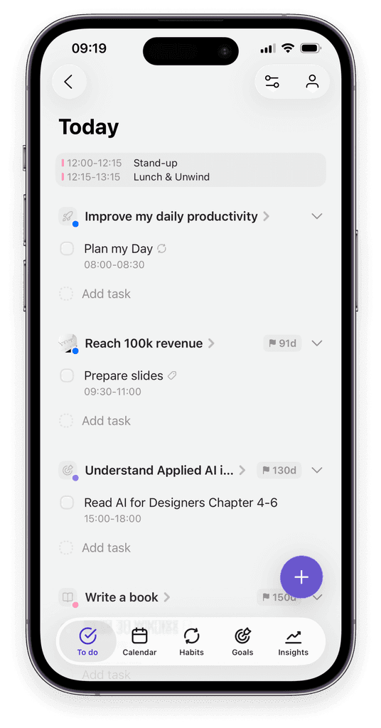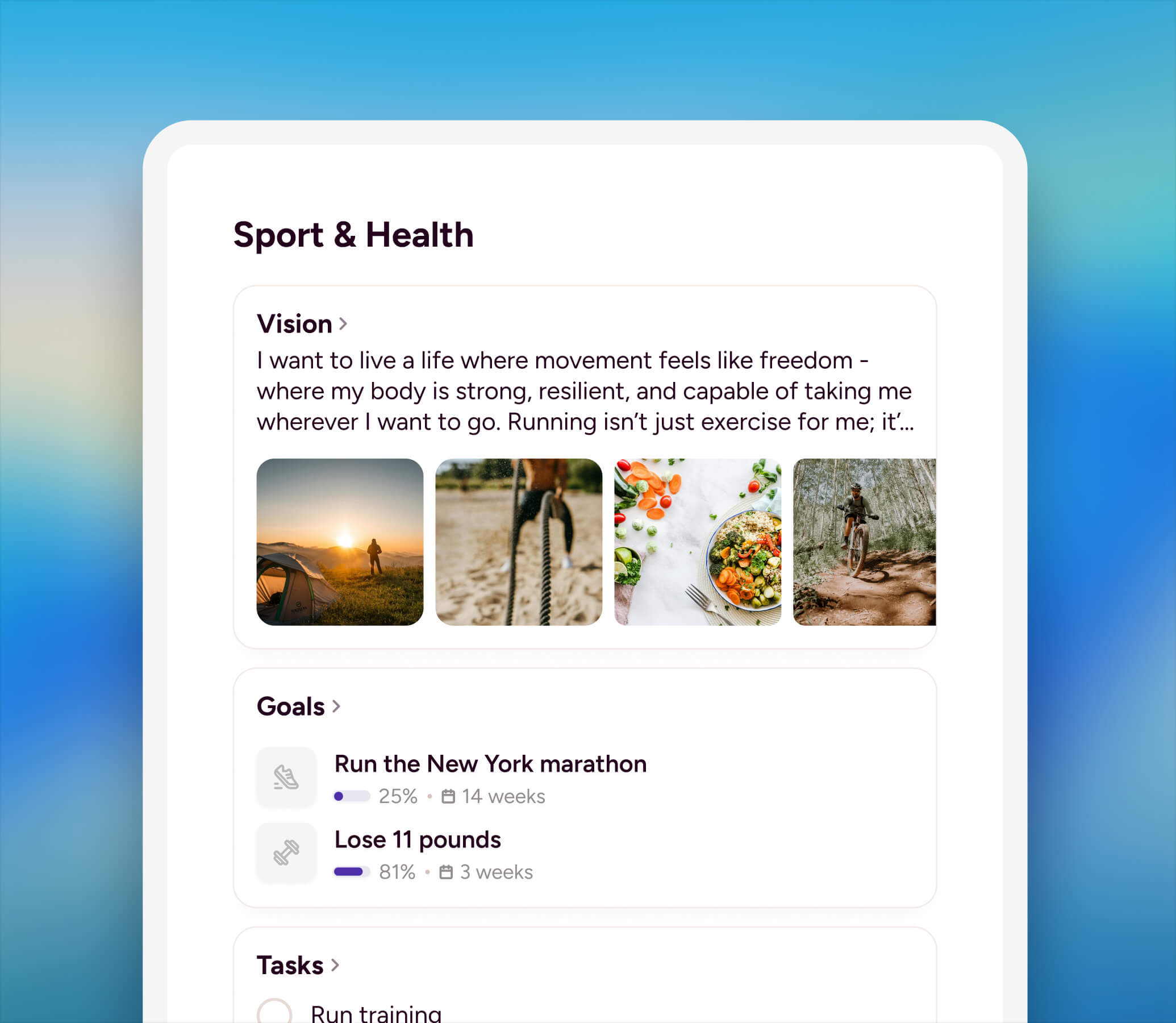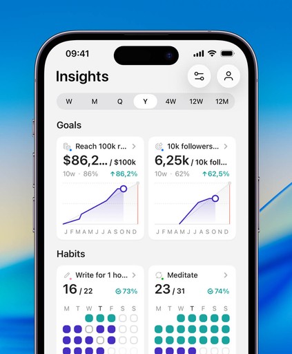 Connect goals to the actions that drive them. Build meaningful, goal-oriented routines with our integrated Habit Tracker, and manage your day with a Task Manager that puts your goals first.