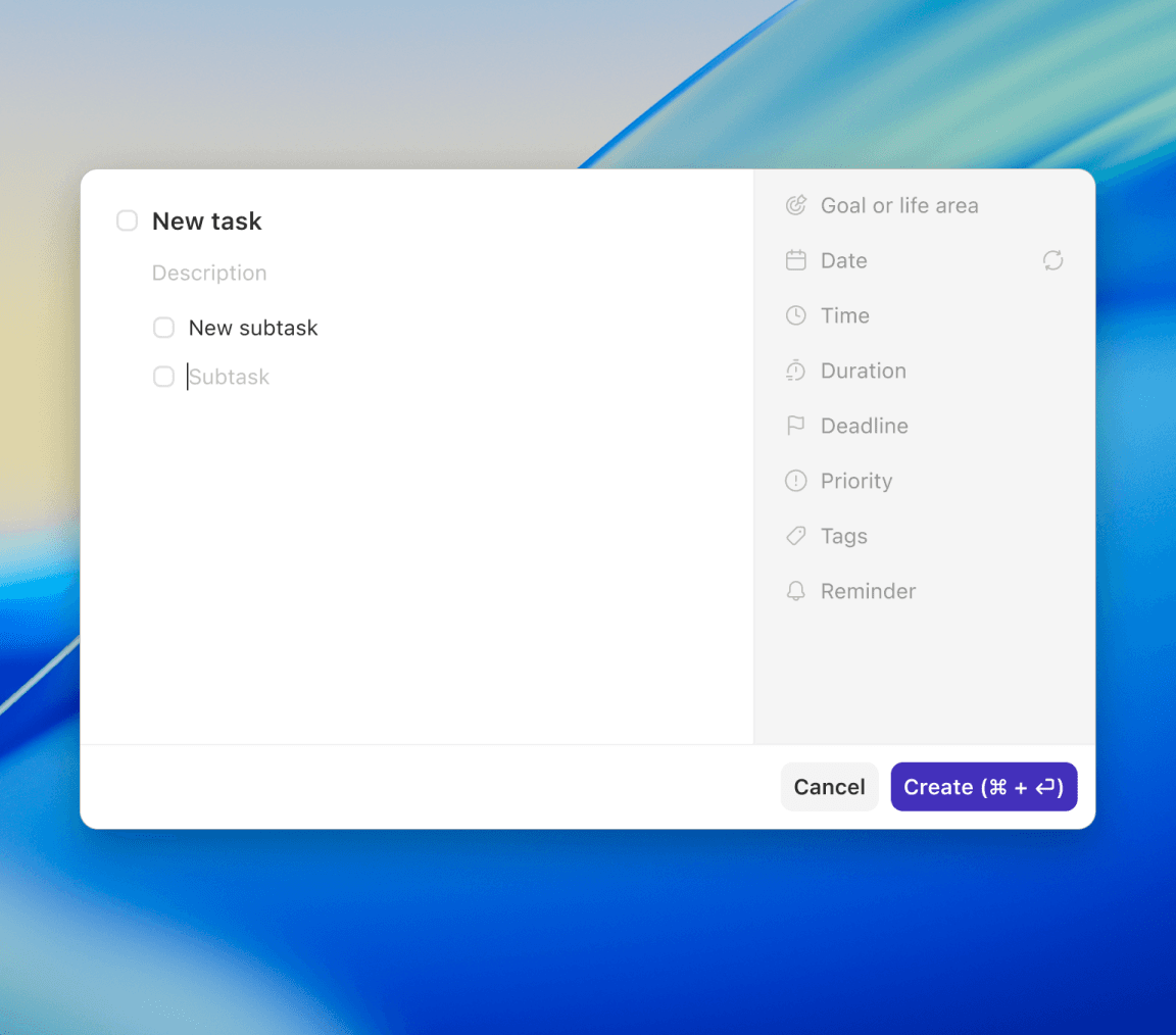 Many Keyboard Shortcuts. For faster navigation, task creation and goal planning.