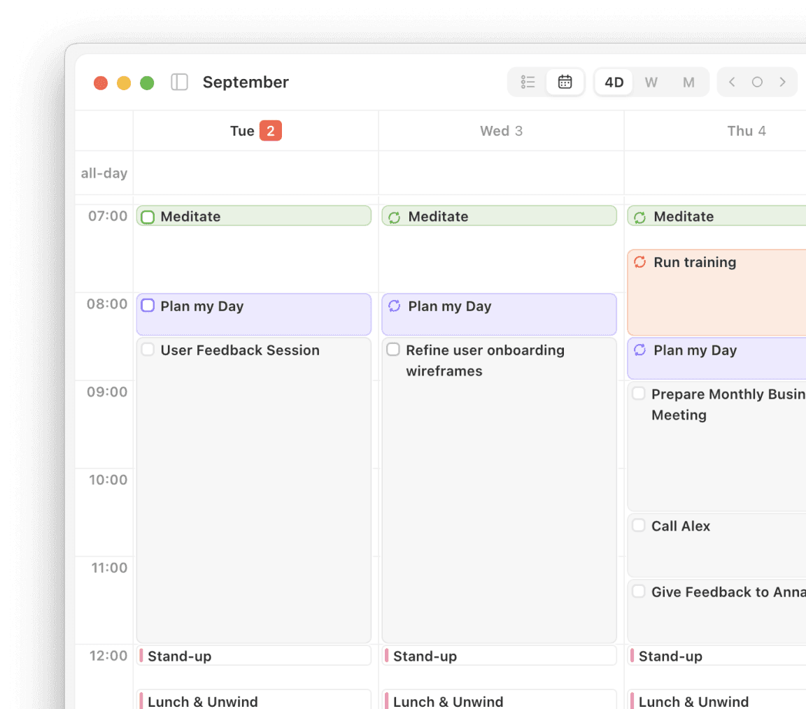 Calendar Views. Time block your tasks on a weekly and monthly calendar.
