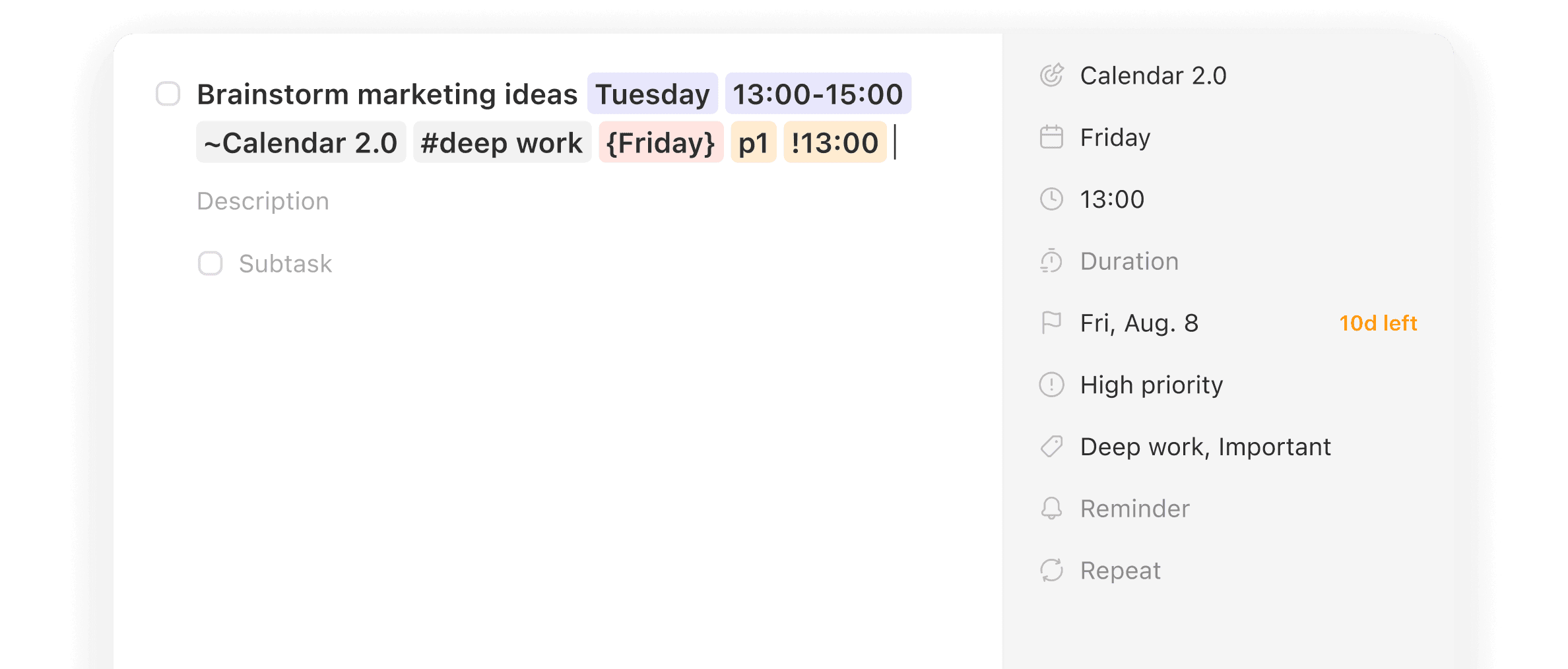 NLP & Smart Recognition. Create tasks faster using natural language and smart recognition.