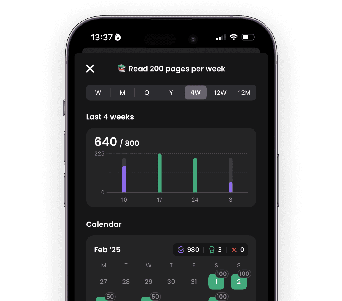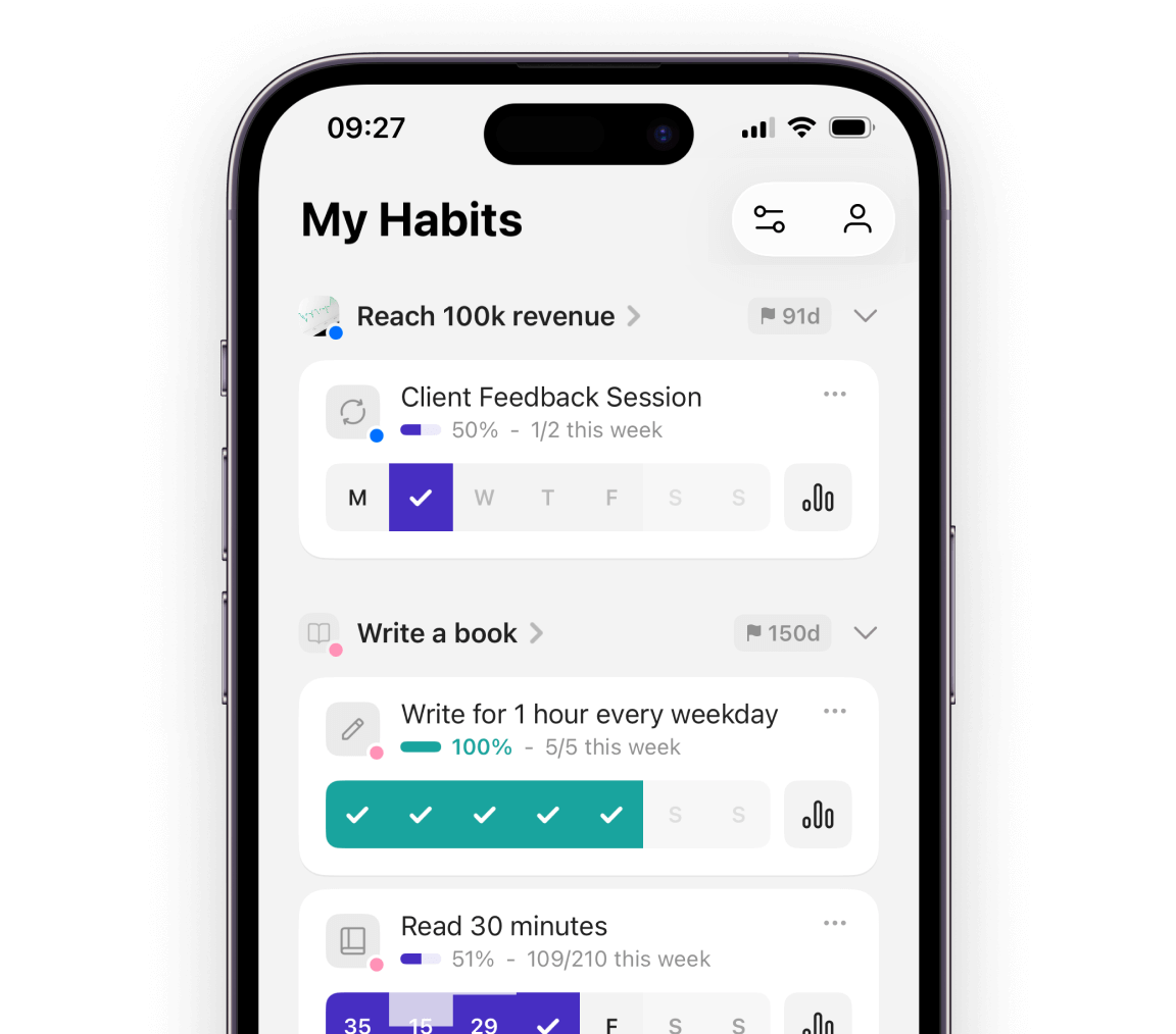 Habit Targets. Set clear daily, weekly, monthly, or yearly targets for your habits.