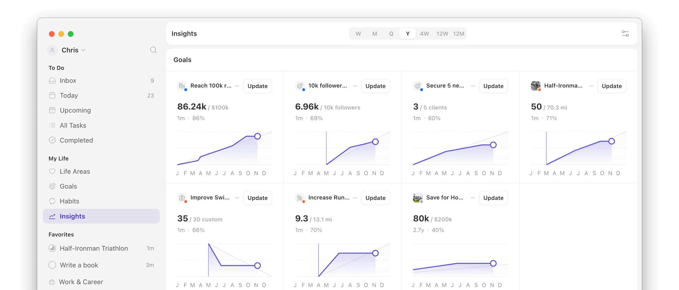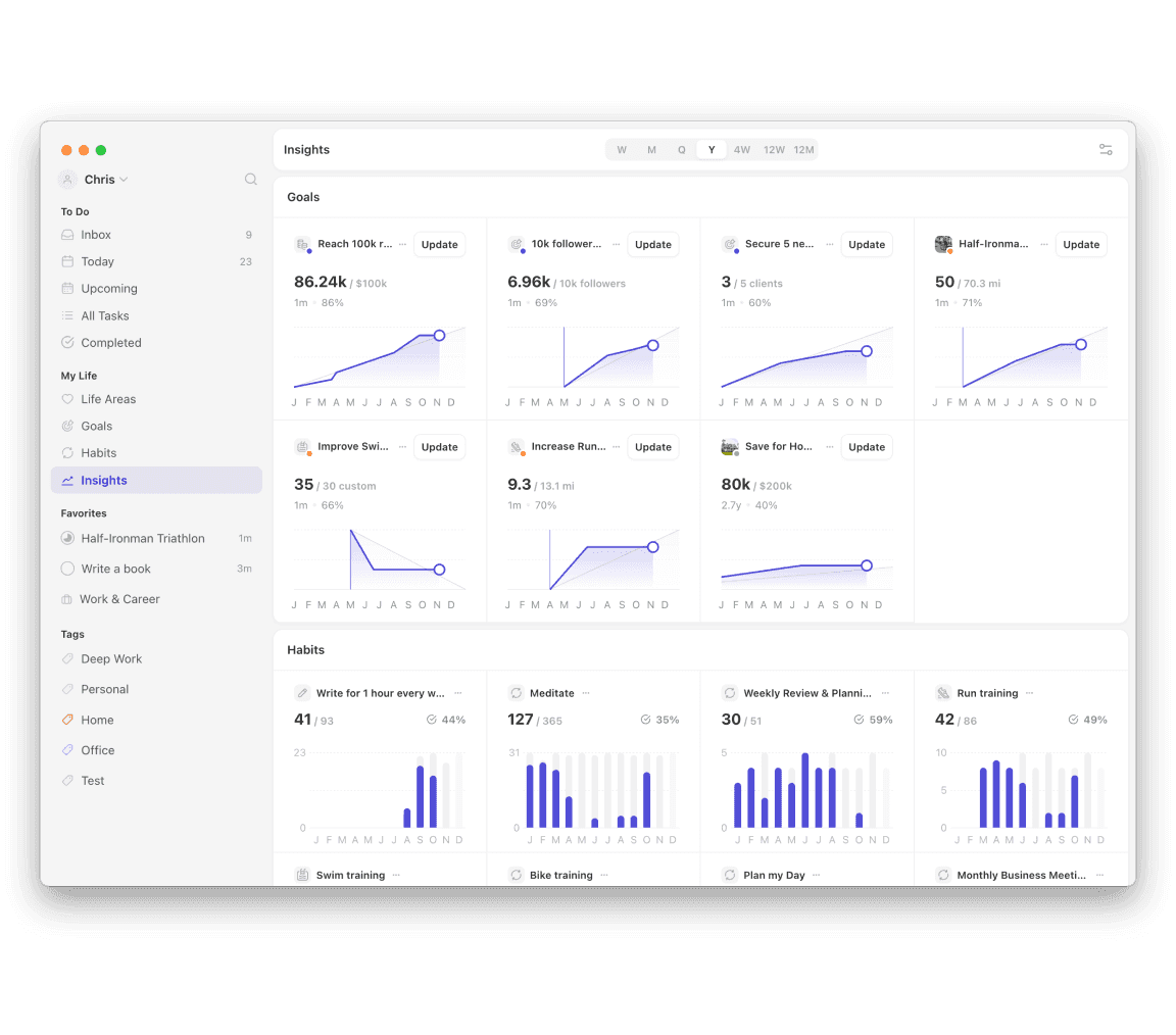 Desktop Insights. Explore your goal and habit progress with detailed insights on desktop.