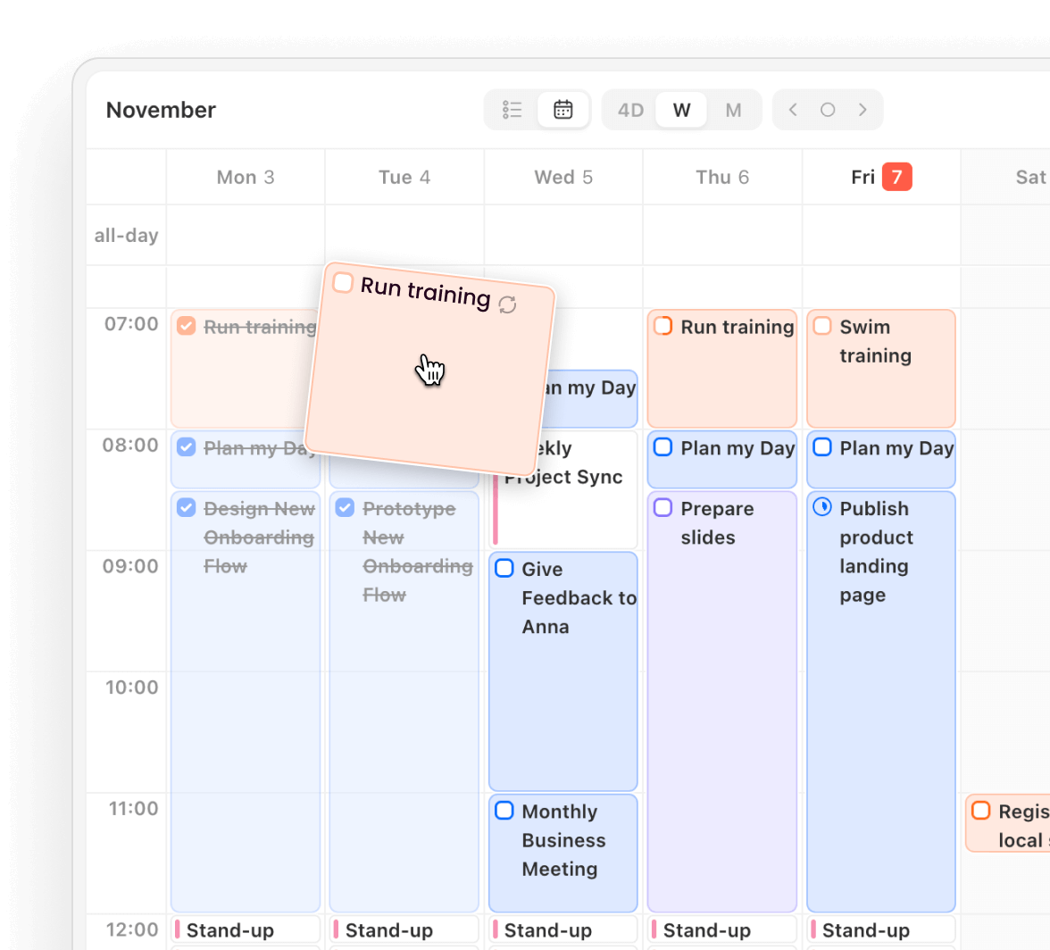 Time-Blocking: Drag tasks into the calendar view to create a realistic schedule.