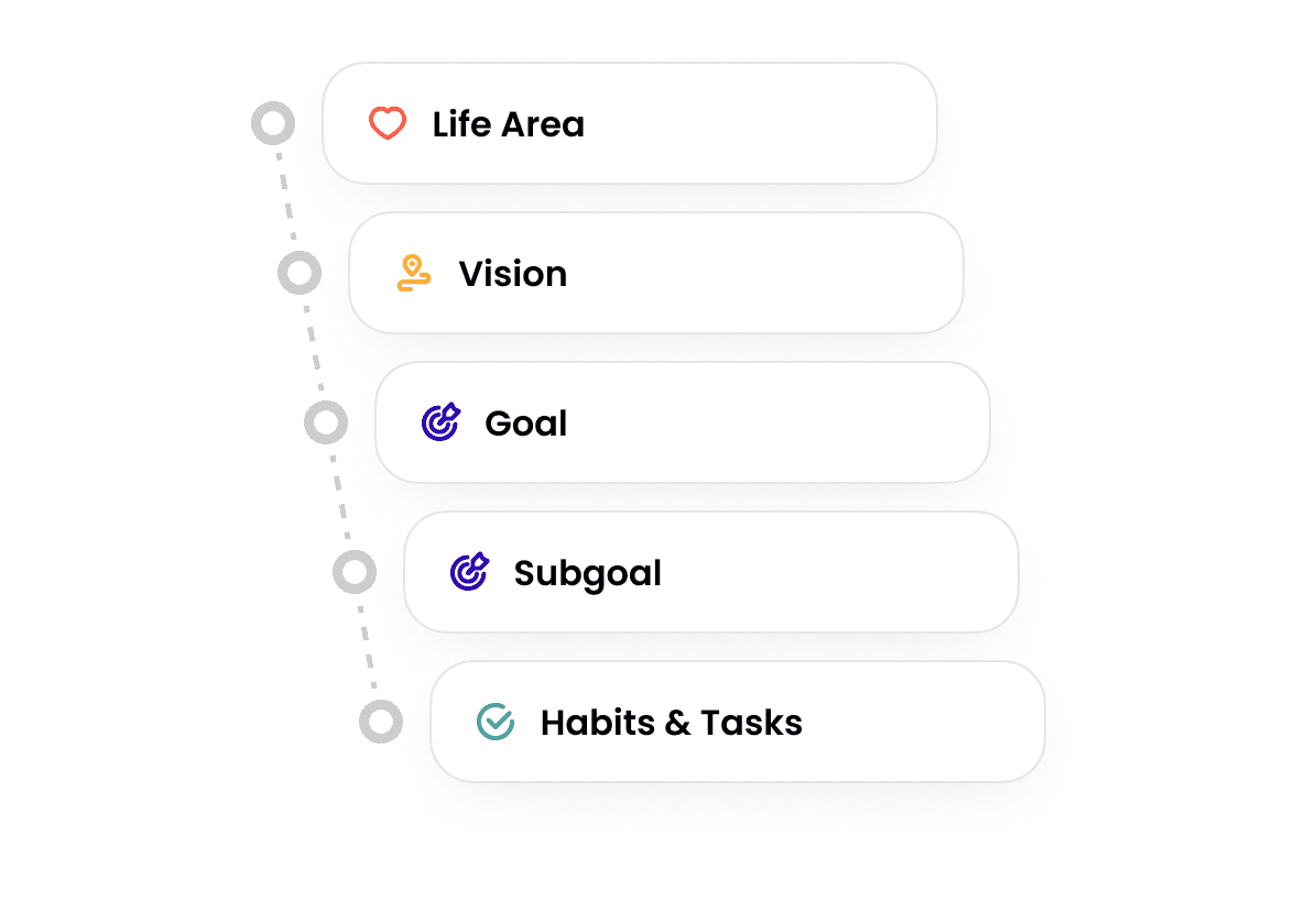 Real life is complex. Griply lets you nest Life Area > Vision > Goal > Subgoal > Task, giving you a map, not just a list.