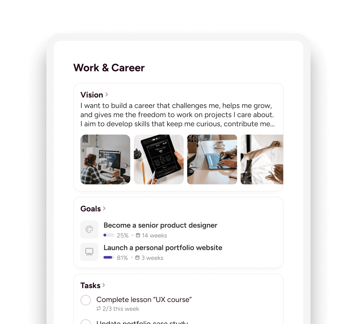 The integrated task manager and habit tracker ensure that your actions are always connected to your "Why".