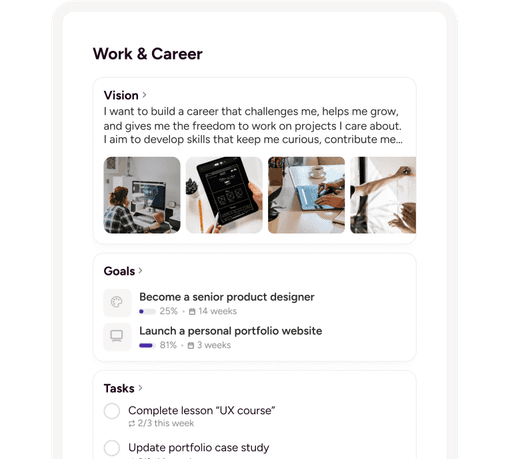 Yes, absolutely. Griply is explicitly designed for your whole life, every area. We provide a dedicated Work & Career Life Area, alongside areas for every other aspect of your life. This framework allows you to manage personal tasks, professional goals, and their alignment within one unified system.