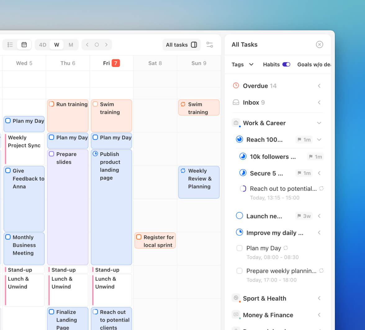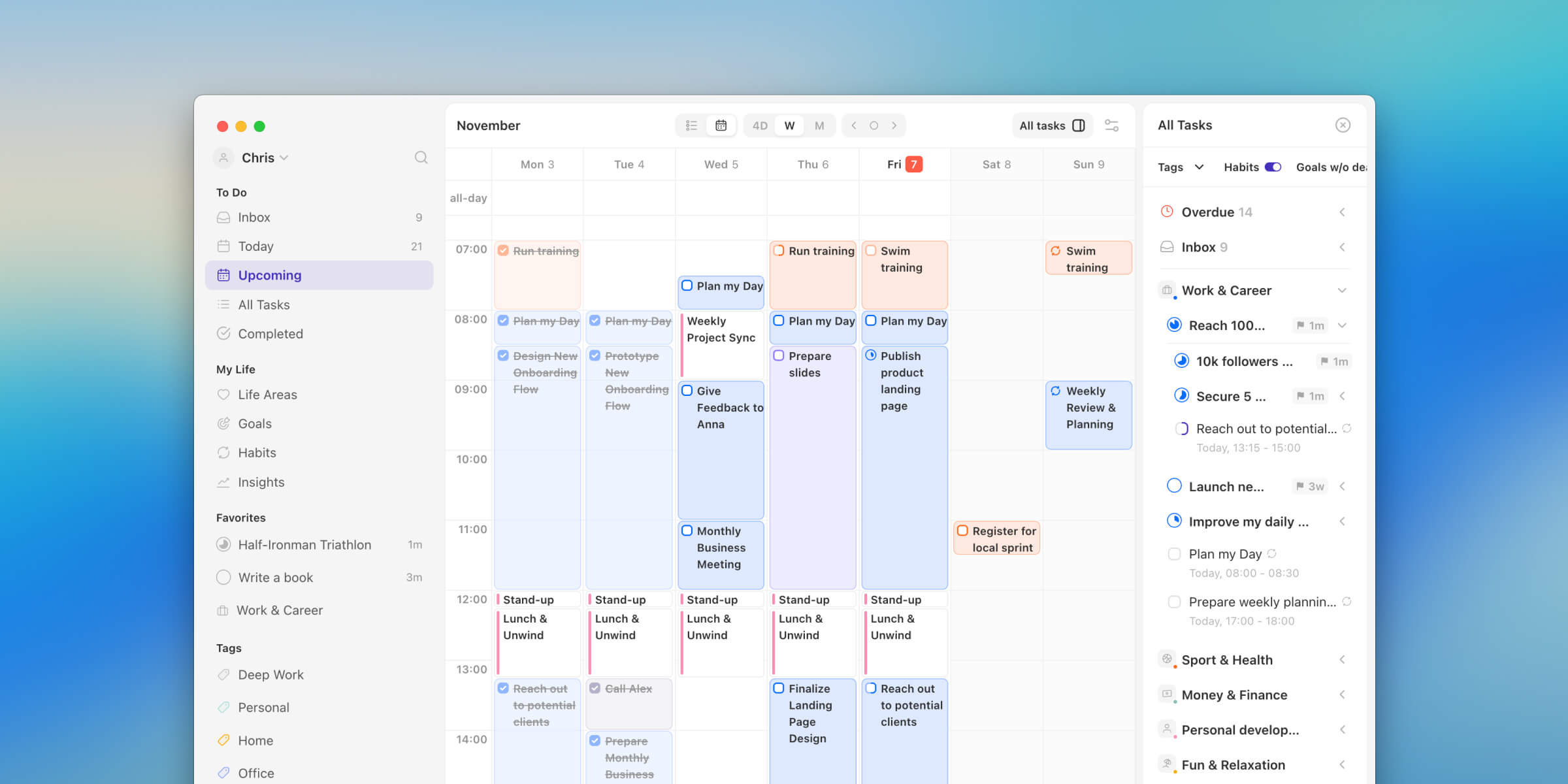 Your Actions Flow In: Your Habits and Tasks flow directly into your daily and weekly views.
