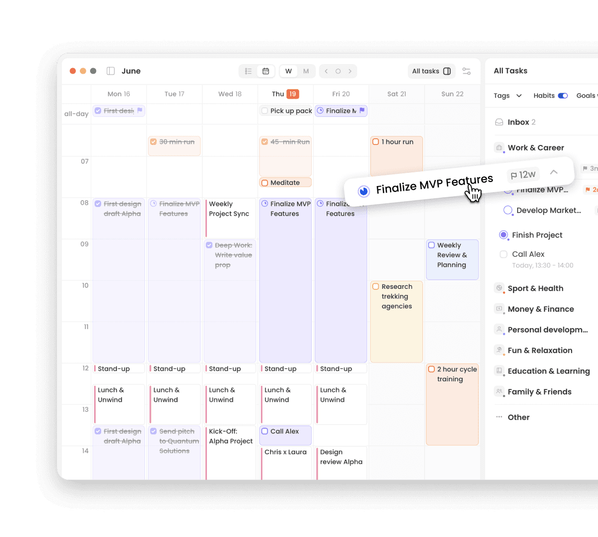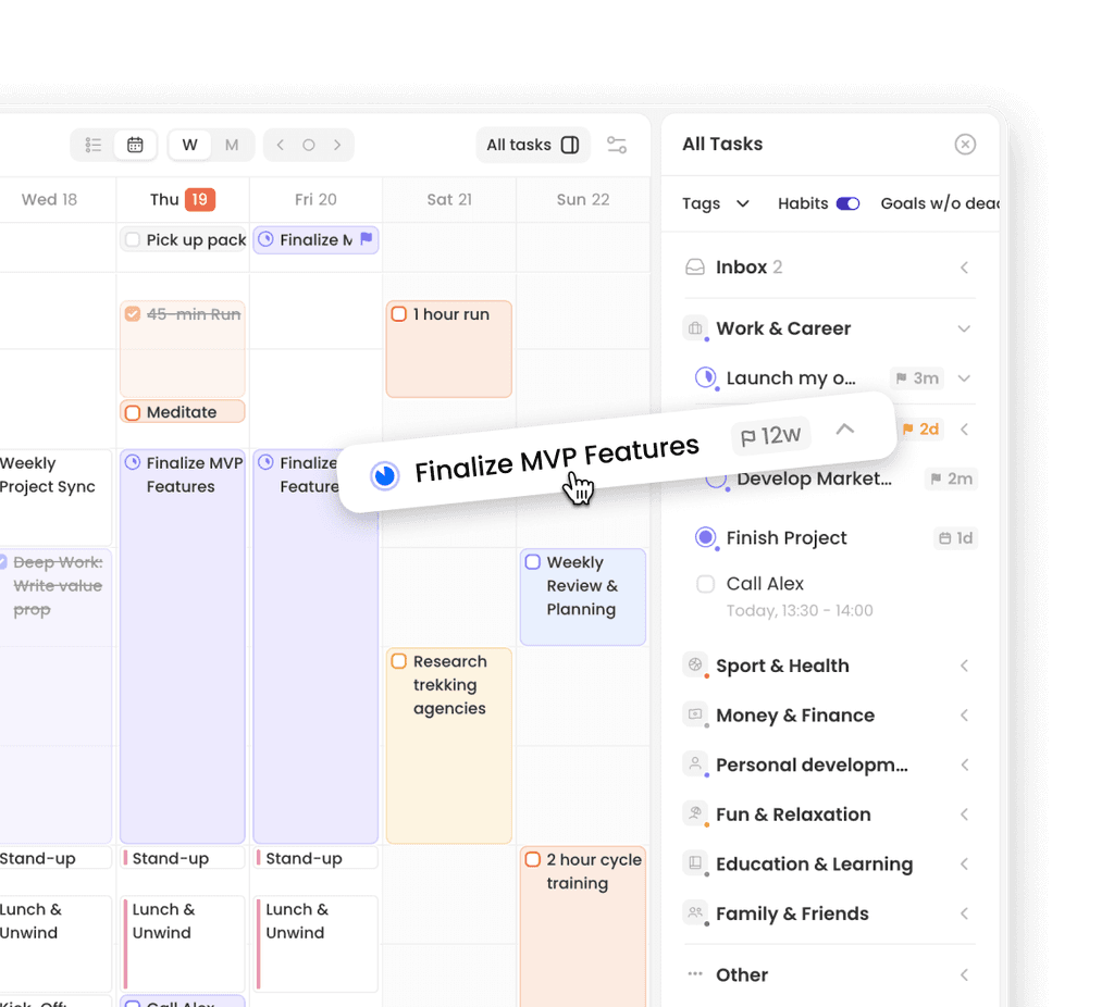 Your "Why" is Always Visible: Your goals are displayed next to your calendar, ensuring you plan with the big picture always in mind.