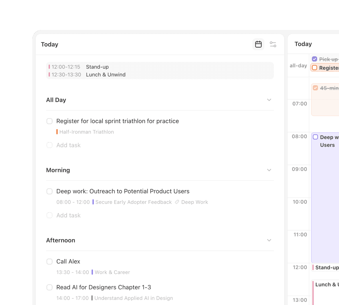 Structure your day for focused work. Group your tasks by Day Parts to stay organized and maintain flexibility without a rigid schedule.