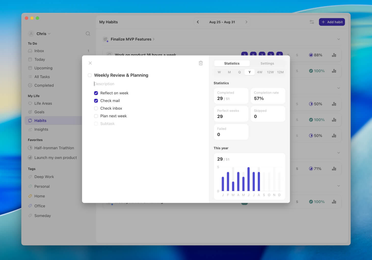 Tip: Create a habit for your weekly review so it becomes part of your routine.